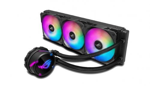 此外,有着高计算需求的用户也可关注下华硕推出了主流级的ROG STRIX LC飞龙系列水冷散热器,120、240、360三种冷排规格,有黑白两种配色,也可以选配支持神光同步的RGB风扇。最特别并吸引眼球的是水冷头设计。ROG“败家之眼”具有RGB幻彩灯效,支持1670万色背光,并具备华硕Aura Sync“神光同步”技术,可与华硕自家主板、显卡和外设等背光同步,轻松营造绚丽灯效。值得一提的是,水冷头的侧面也有RGB灯条,旋转式设计非常独特,夜晚在侧面也能看到不错的灯效。