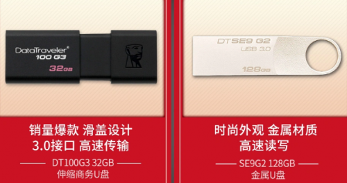 除了电脑主机配件以外,平时使用的U盘也要升级了,特别是那些还在使用8GB容量的用户,不仅容量捉襟见肘,速度也只有10MB/s+,拷贝数据慢如牛。目前,推荐购买拥有经典滑盖设计的金士顿DT100G3,容量32GB,应付一般办公存储资料,甚至车载听歌都没有丝毫问题;另一款金属材质的DTSE9G2也是极好的选择,128GB的容量适合学生日常拷贝资料,速度也可达到100MB/s,效率也非常高。两款都是市场上热销的型号,按需选择即可!
