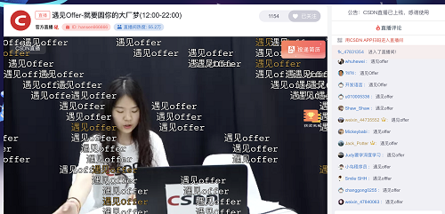为满足企业用工需求,更为圆CSDN用户们的“大厂”梦,5月15日12时, 由CSDN举办的「遇见Offer-就要圆你的大厂梦」10小时在线招聘直播活动正式开播,在接下来的10个小时招聘直播中,一度达到百万级的参与热度。
