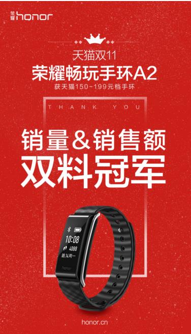 据数据显示,荣耀逆龄神器在双十一期间获得了良好战绩。其中,荣耀畅玩手环A2更是获得了天猫“双11”150-199元档手环的销量和销售额的双料冠军,可见消费者对荣耀的支持和信赖,让我们共同期待荣耀更好地发展。