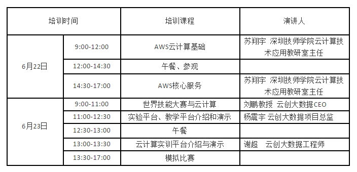 6月22-23日,欢迎各院校老师参加云创大数据(工信部认证的“工业和信息化人才培养工程培训基地”)举办的云计算免费实训,由刘鹏教授、苏翔宇老师与云创大数据工程师共同呈现世界技能大赛的备赛情况,并展示AWS、云计算实训平台,参加学员还可现场进行上机体验。期待您的莅临!
