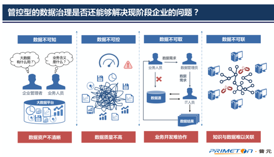 数据治理的经验基本上都是来自于银行,银行的数据治理形式,其实是一个非常强的管控型的。一般有非常强的管理流程和很多的管理规范,这之中往往会发现一个问题。大家觉得管控型的数据治理给大家增加了很多工作量的同时还没有解决问题。