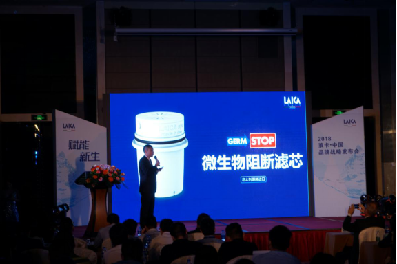 接着,莱卡中国&怡莱生活电器公司总经理郭伟新将会议带上了高潮,他首先回顾了2017年净水市场数据并展望2018发展,提出了现阶段净水器存在的体积太大、成本高、不知道换芯时间、安装复杂、废水多、纯水缺少矿物质6大痛点,然后向大家隆重介绍了5款滤芯,重点发布2款LAICA莱卡新品,以及5款意大利原装进口滤水壶产品,并与大家分享了未来莱卡将涉足开发的产品领域,引发现场嘉宾热议。
