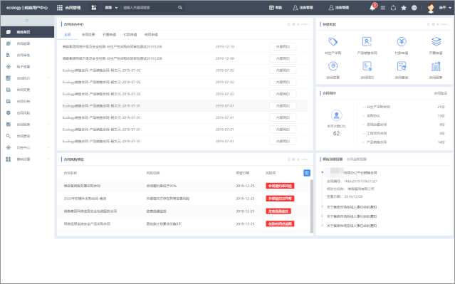 并通过贯通业务财务数据,实现合同履行过程中对收付款要素的控制,提供对于合同拟制和合同履行全过程风险预警,真正实现全生命周期的合同管理。