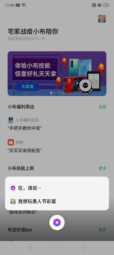 只要对小布说“小布你好”、“早上好”、“我喜欢你”等语令,就可以收到愚人节限时回复语。例如对小布说出“早上好”,得到的回复是“早上好!谁能回答一下我,为什么今天又得起床,明明昨天才起过床。”,十足逗哏演员,陪你嗨起来。只此一天哦!