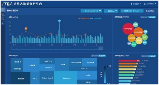 从故障管理角度看,全面采集设备资源、应用、服务等告警信息,多种告警机制,自定义配置告警阈值。将告警信息数据按照时间、资源、性能类型等维度以图表等形式展现。当业务系统出现问题时,可直接定位故障源头并将报警信息及时推送给运维人员,保证运维人员第一时间了解故障点并进行解决,对各种问题进行统计分析,多元化的展现给运维人员。