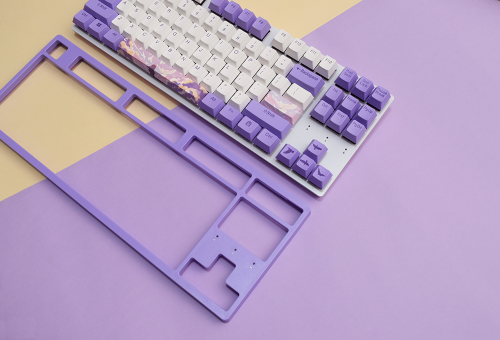 “梦遇”机械键盘以“梦”为题,作为“浪漫”系列的开端,粉紫与白色的组合浪漫温馨,如少女深藏于心里的梦境,梦幻而充满遐想——仰头注视的少女身处于云霞与漫天轻羽之中,似幻似真,如梦如画,仿佛一切美好尽在,触手可及。