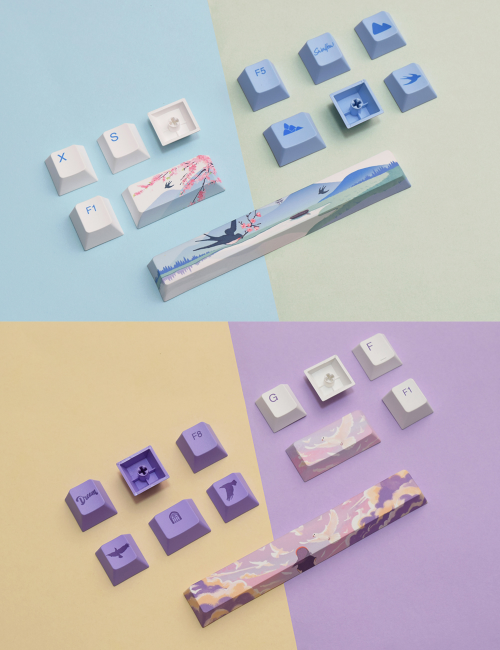 “归燕”机械键盘是设计系列“四季”的首款产品,以“春日”为题,蓝白的清新配色,水墨风的春之画卷,极尽视觉营造的功夫,更精湛的五面热升华,在大键位上生动地描绘了万物复苏,风轻浪平,“归燕”鸣春的景象。