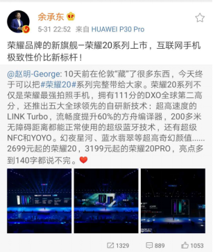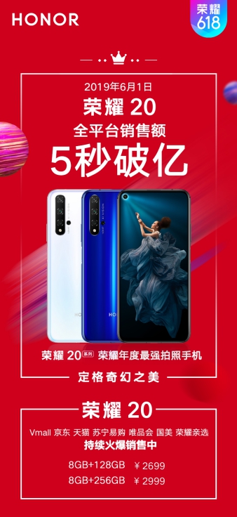 荣耀20系列首销战绩公布,开售后5秒破亿!网友:支持荣耀不接受反驳!