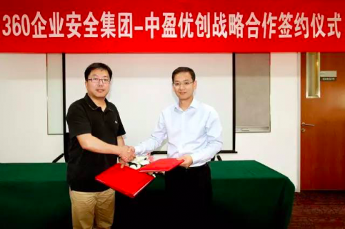 北京,2017年7月27日—— 中盈优创资讯科技有限公司(以下简称:中盈优创)日前宣布与360企业安全集团(以下简称:360企业安全)签署战略合作协议,标志着双方在运营商行业市场展开全面合作,也揭开了双方在行业安全解决方案上优势互补、相互促进、面向未来、互利共赢的新篇章。