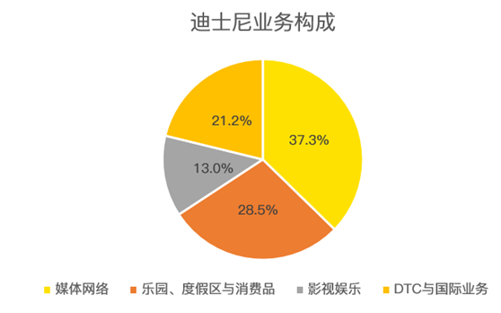 在迪士尼的业务构成中,目前营收规模最大的是传统的媒体网络业务,Q2营收72.57亿美元,同比增长28%,主要得益于去年对21世纪福克斯的收购;第二大业务是我们所熟知乐园业务,Q2营收55.43亿美元,同比下跌10%,受到新冠病毒明显影响;第三大业务是迪士尼的流媒体业务,即DTC与国际业务,Q2营收41.23亿美元,同比大增260%,疫情极大的刺激了流媒体业务的发展;而影视娱乐业务在Q2营收25.39亿美元,同比增长18%,尚未明显受到疫情的影响。