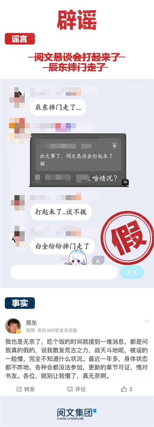 说完了正事,小编还有个彩蛋,真是佩服有些“作家”的想象力,居然有人在造谣说,这场其乐融融,关系到未来几年网络文学行业发展的重要恳谈会,居然打起来了。真怕是武侠小说看多了…..