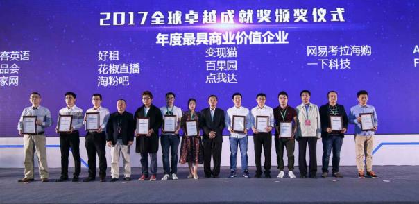 获得2017全球移动互联网卓越成就奖【年度最具商业价值企业】荣誉的有:说客英语、唯品会、好租、齐家网、花椒直播、淘粉吧、变现猫、网易考拉海购、百果园、一下科技、点我达、Amazongo(美国)、Facebook(美国)。