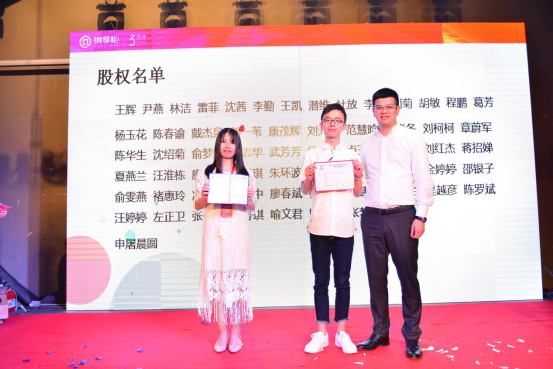 张焱为员工代表颁发股权证书和期权证书