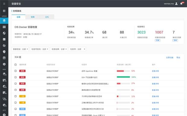 青藤蜂巢·容器安全产品的合规基线产品就是通过对CIS Benchmark的持续自动化的检查,来发现整个容器运行环境中存在的问题,并且给出相应的修复建议,帮助用户能够最大程度地保证容器运行环境的安全性。