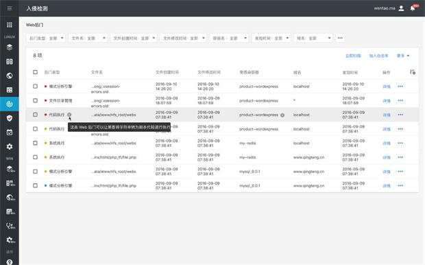 (1)Webshell检测。通过识别web目录,结合正则库,相似度匹配,沙箱等多种检测方法,定时检测文件变化,从而及时发现Web后门,并对后门影响部分进行清晰标注。