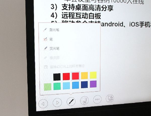 一方面,传统白板交互应用并非“新科技”,在功能、细节等软件设计上已经很成熟。联想能做的只是更为精准的针对会议场景,提出快捷的“操作”方案。例如,多手指触控、手势擦除、缩放移动拖拽、漫游等便捷的操作,让控制与书写变得轻松。这种设计,能够为快速的会议过程中的操作提供独特体验。除此之外,包括多种笔形、笔触、色彩等,多种功能辅助按钮等,属于常规必备内容。