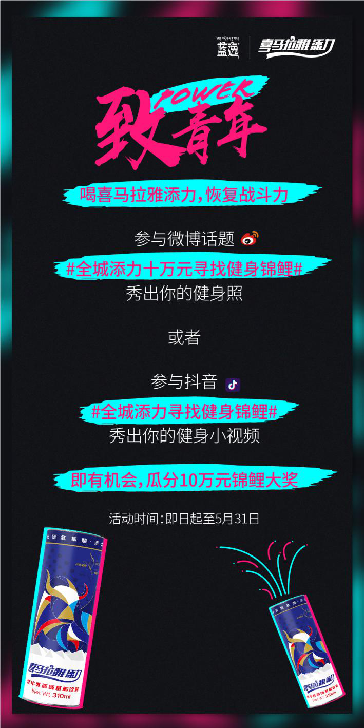 这个2019,你和锦鲤王之间只差了一场花式健身大挑战。喜马拉雅添力,氨基酸给你活力,蓄积战斗力!