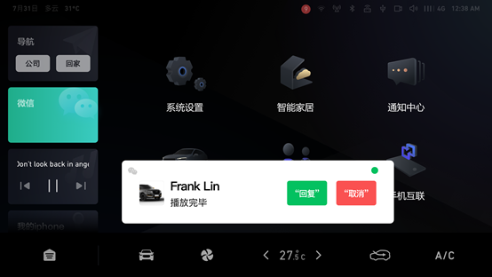 当然,作为一台足够“硬核”的SUV,2020款哈弗F5还很善解人意地搭载了腾讯微信车载版。可以通过语音指令发消息、听消息、实时通话,还可使用位置共享等功能,全程不碰手机也能及时回复小伙伴们的消息,一心二用而又不担心行车安全,哈弗F5就这样轻松搞定!