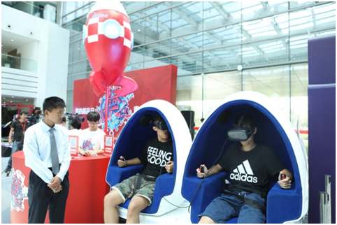 在另一边酷炫的VR游戏区,前来体验的人也不少。在炎炎酷暑里体验神奇的VR滑雪感受无限清凉的滑雪乐趣。