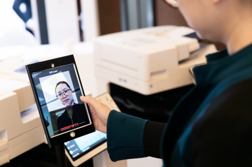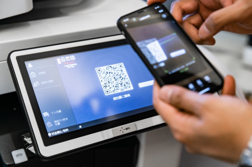 现场嘉宾体验uniFLOW智能解决方案,解锁扫码登录、人脸识别认证等新姿势