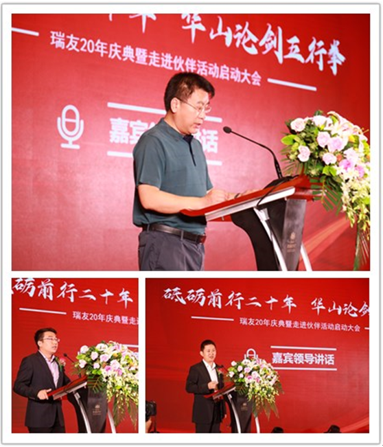 本次会议以“砥砺前行二十年 华山论剑五行拳”为主题,采用贵宾现场参会和面向全国同步线上直播两种方式。陕西省工业和信息化厅信息中心、省科技产业中心、陕西软件行业协会等多位领导出席会议。金蝶公司西安分公司总经理、远光软件西安分公司总经理、浪潮软件西安分公司总经理、陕西国际信托投资股份有限公司董事长、劳斯莱斯汽车西安总经理等100多位各界嘉宾亲临现场,同时上千家瑞友合作伙伴通过在线参加大会直播,共祝贺瑞友20岁生日。