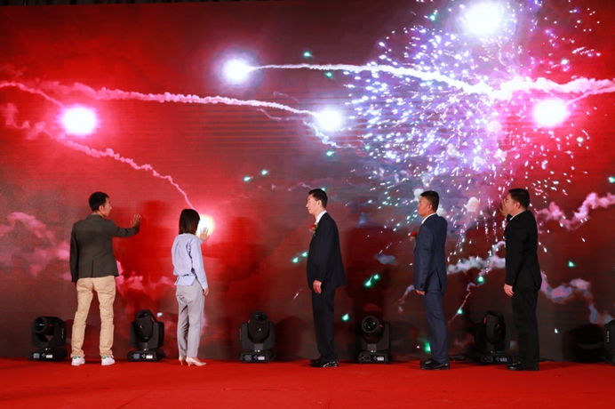 西北狼互联网生态协会会长傅桦、西安逸宾电子科技有限公司总经理靳成斌、延安双丰集团董事长袁彦峰、科技产业中心办公室主任刘雪和瑞友董事长方浩一起启动开幕仪式,全场为之欢呼,共同见证这历史性的一刻。
