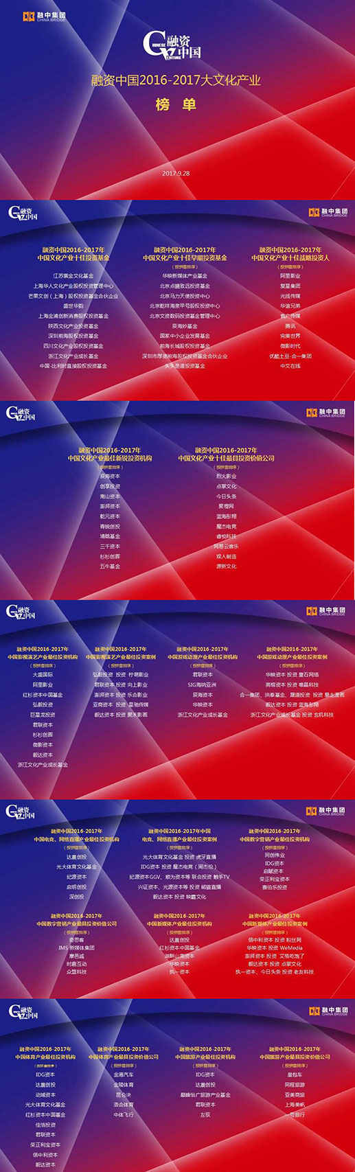 在此次会议上,融资中国2017文化产业发展白皮书发布,会议同时还进行了隆重的颁奖典礼。