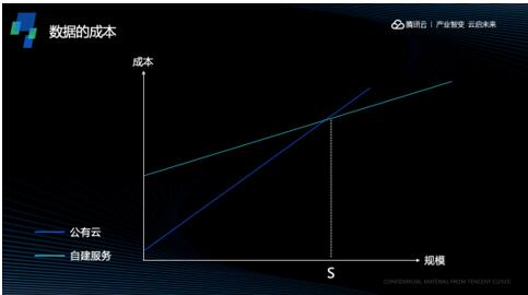 但当企业应用的规模不断扩大,成本的曲线逐渐上移,甚至超过了S线。云服务的弹性能力仍能够帮助用户节约大量的成本。 这时,原本将数据放在公有云上的企业,可能会将部分数据移到私有云或者自建IT基础设施上,形成混合云架构。