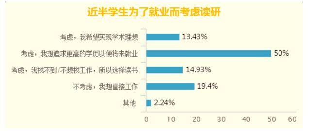 在困扰过读研问题的毕业生中,近八成选择了继续读书。调研显示,只有小部分学生是为了继续追求学术梦想而读研,而为更好就业而选择读研的毕业生占了绝大多数。近半数学生认为,读研能使他们在将来就业中增加资本。