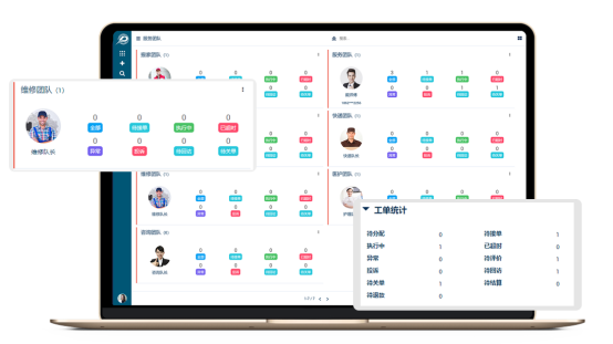服务团队的建立,管理服务团队内部机制以及服务人员,并设定服务团队的接单与派单机制等,并统计服务团队各项服务指标。