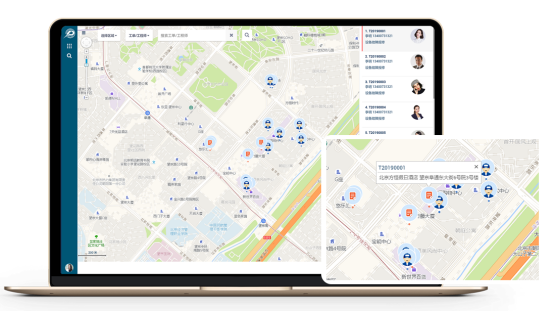 基于服务地图,监控服务工单、服务人员、设备资产等信息。实时更新服务人员的位置信息,并能够通过地图完成服务分派与调度。