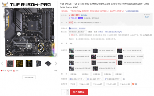 华硕TUF B450M-PRO GAMING游戏主板,凭借超高性价比和强悍的游戏性能表现实力斩获两项大奖,备受玩家认可,被玩家称赞为“地表超强B450小板”。推荐使用同样极具性价比的AMD锐龙5 3600处理器,强强搭配,是追求高性价比和高品质主流玩家不可或缺的电竞硬装!现在购买板U套装价格更实惠,到手仅需2099元,近期有装机需求的玩家可千万不能错过!购买链接:https://detail.tmall.com/item.htm?id=576541456469&skuId=4172445101254