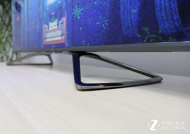 海信U7E的底座采用蝶翼形态设计,这种三角形态的均衡对称,柔美灵动十分讨喜,金属剖光工艺也让这台电视看起来更加高级。