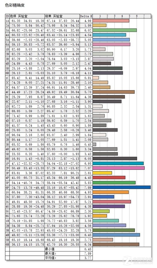 实际测试得到海信U7E电视的色彩还原准确性ΔE数值为3.77,这一数值甚至可以媲美专业显示器产品。可以说原始色彩还原度相当出色。