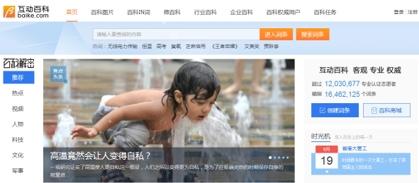6月19日,中文百科网站——互动百科web端首页全新改版,新加入的海量百科解密图文视频内容与线上已有的1600万词条相结合,让亿万用户乐享知识的力量与解密的乐趣。