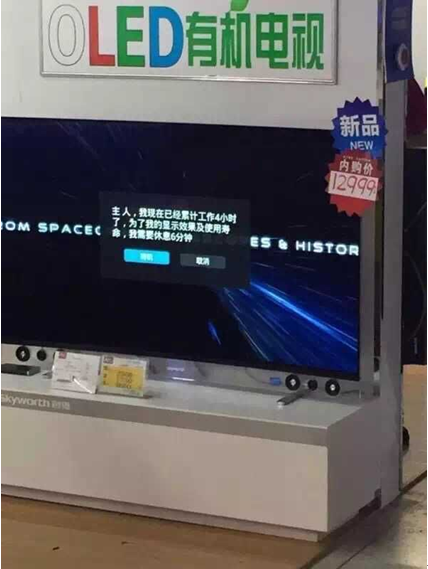 (OLED电视:都看四小时了,还不让休息会,不知道会把老子脸烧坏吗?)