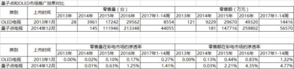 全行业都是OLED的,那为什么OLED电视上市三年的时间,截止到2017年第四周,市场渗透率还停留在0.27%的水平上?而同期晚上市近两年的量子点电视已经达到1.41%(数据来源:中怡康)?知道OLED卖的贵,但是消费者也不傻,大家不缺钱买个贵电视,主要是电视本身存在显示质量的问题,那口碑自然上不去,销量就更窘迫了。