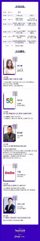 Testin云测CTO将亲临现场与嘉宾分享应用商店技术性分析与解密,58集团iOS增长负责人亲临揭秘SEM与ASO的正相关关系,更有优质出海企业EnjoyCEO分享出海实战。过来人角度跟你探讨,推广的正确姿势,流量蓝海的准确定位,审时度势的正确执行技巧,以及本土企业出海策略的制定与执行。并且每个分享内容都配备答疑时间,保证你听到耳里,记在心中。