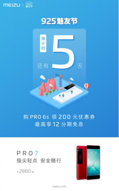 今天下午魅族科技在其官方微博上给出了一张有意思的海报,大号的数字“5”暗示着925魅友节正式开启5天倒计时。官方更是给出了首个大礼,在此期间(9月21日至9月25日),只要你在魅族商城购买魅族 PRO6s,可领取200元高额优惠券,购机直减200元,在此基础上,还能享12期分期免息,让你轻松无压力换新机。