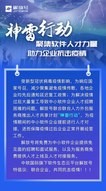 神雷行动 解放号在线人力解决方案 力挺中小软件企业过疫情寒冬
