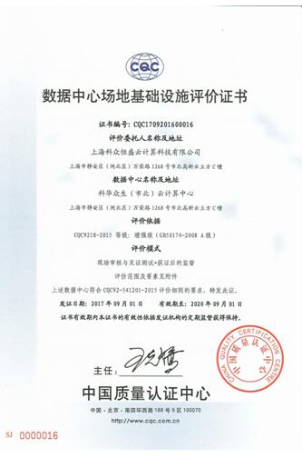近日,科华恒盛云集团旗下自建自营的科华恒盛(上海市北)云计算中心获得中国质量认证中心(CQC)颁发的A级机房等级证书,目前国内仅十余家数据中心通过认证。这不仅代表该数据中心场地基础设施已达到国内最高水准,也意味着科华恒盛已具备A级机房的设计建造能力。