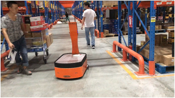目前,爱啃萝卜机器人技术(深圳)有限责任公司(以下简称:AICRobo)自主研发的仓储自主运输机器人在国内某大型仓库首测顺利完成,成功通过各种复杂又充满挑战性的应用场景测试,灵活运用性极高,身手不凡,在场的人纷纷为它竖起大拇指!