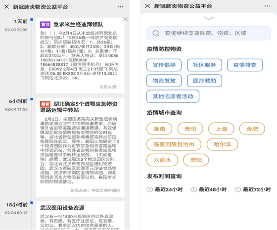 新冠肺炎物资公益平台: http://rescue.sitiits.com:9966/visur/#/