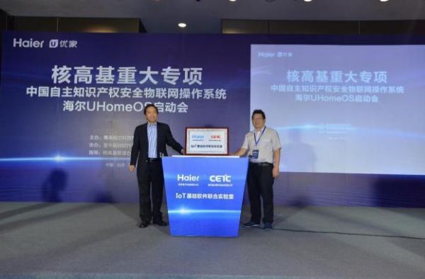 9月15日,在海尔主导的“核高基重大专项——面向智能家电的物联网安全操作系统海尔UHomeOS启动会”上,海尔家电产业集团CTO、副总裁赵峰,普华基础软件总经理江水共同揭牌并宣布,联合成立“IoT基础软件联合实验室”,分工合作,布局物联网操作系统领域,共同实施面向智能家电的物联网安全操作系统研发与产业化推广,迎接中国自主可控的物联网智慧家庭操作系统的崛起。
