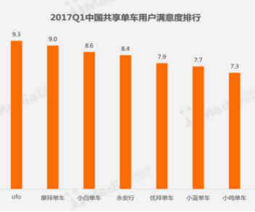 作为出行最后三公里的首选方式,ofo小黄车已经成为最受年轻人喜爱的共享单车品牌。第三方权威数据机构艾媒咨询用大数据进行了解答,从多个方面论证ofo小黄车综合实力居共享单车之首。根据艾媒咨询《2017Q1中国共享单车市场研究报告》显示,ofo小黄车的用户满意度为9.3分,排名行业第一,摩拜单车、小白单车分别以9.0分和8.6分的满意度排名第二及第三。