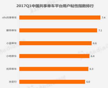 艾媒咨询对不同品牌共享单车用户粘性指数进行了排名,ofo以7.4分位居榜首,摩拜和小蓝单车分别以7.1分、6.6分排名ofo之后。艾媒咨询分析师认为,ofo的取胜关键在于起步早和用户体验好,这两个要素使小黄车获得许多忠实粉丝。