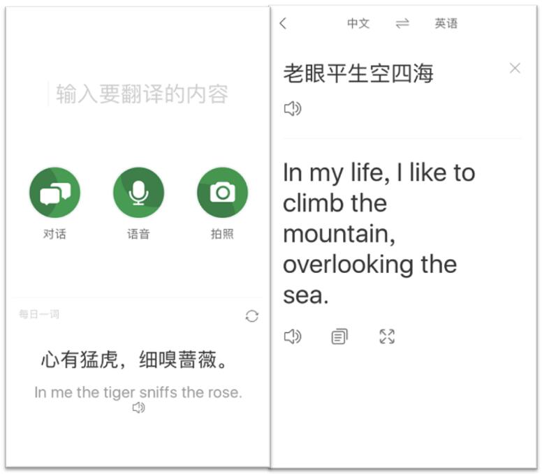 更重要的是,搜狗搜索在中文自然语言理解领域的积累,以及相比谷歌等更专注于中英互译的研究,让其在对本土化古文化诗词、年轻人喜爱的网生内容等翻译方面更有优势。譬如,搜狗翻译可以准确翻译南宋诗人刘克庄《贺新郎》诗句“老眼平生空四海”。