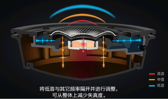 HyperX Cloud Alpha 紫晶游戏耳机的双音腔则采用为每只单元配备两个音腔,通过声学机械分频设计来延迟混响,将高、中、低音分开处理,从而扩宽声场,并让低音的下潜变得更加深邃。而目前市面上的耳机均采用单音腔+单发声单元的设计,区别于音箱产品,耳机发声单元覆盖耳朵,与耳膜几乎没有距离,纵向声场不够深,容易让玩家感觉耳机里面传出来的声音只存在于脑中,而并不存在于游戏空间内,声场不自然,缺乏真实感,并容易混淆敌人的准确方位。而采用双音腔后,能让来自不同方位的脚步声、枪声、环境声等音效不再混为一团,声音远近的距离呈现出层次感,更具辨识度。