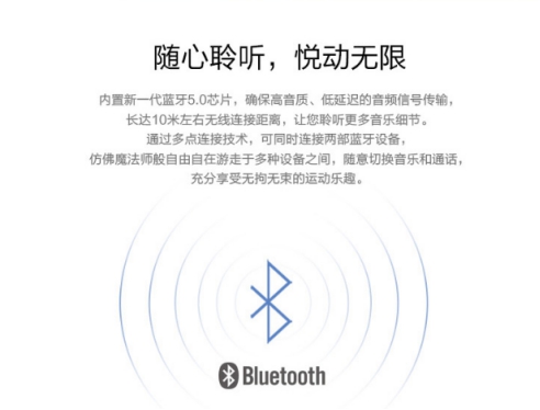 蓝牙5.0高能芯片,10米无障碍传输,手机放在卧室,你戴着耳机去客厅的跑步机上跑步都不成问题。